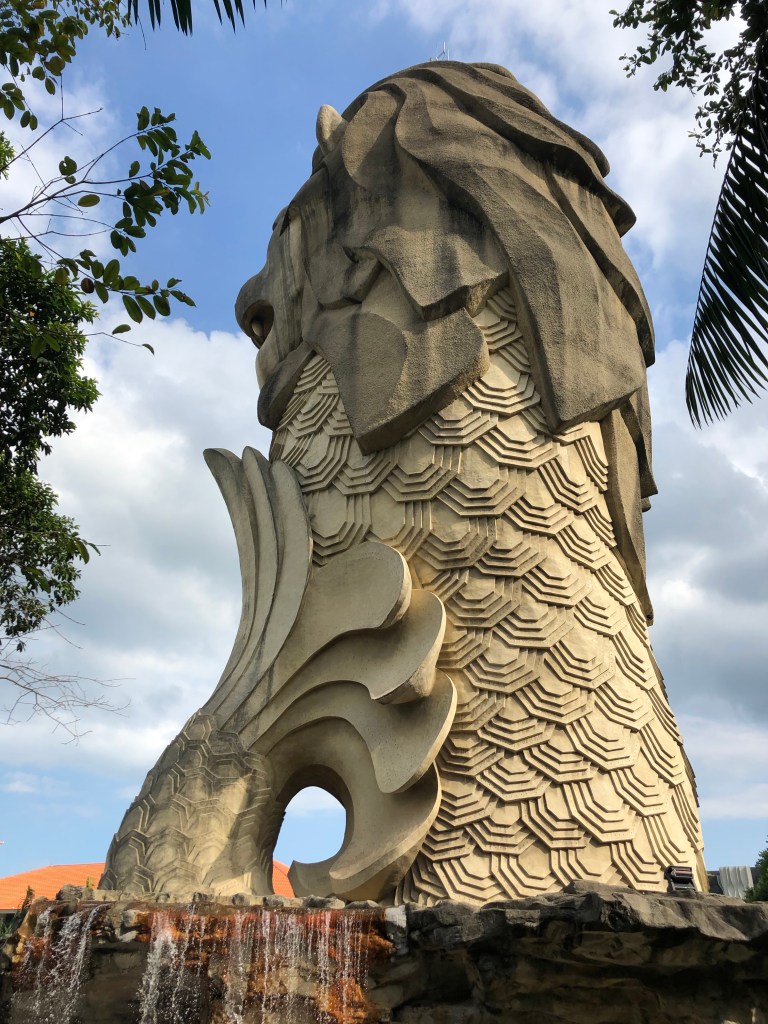 Ďaľšia a obrovská socha Merliona je na ostrove Sentosa, ktorý je vzdialený iba pár minút vláčikom od metra HarbourFront. Na tomto ostrove nájdete nespočetne veľa zábavných atrakcií, reštaurácií, obchodov a vodných parkov, morské akvárium ale aj pláže, kde si môžete oddýchnuť. Na ostrove Sentosa sa dá určite stráviť 1 celý deň.