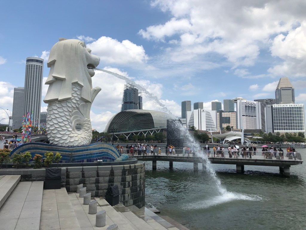 Symbolom mesta je Merlion, mýtické zviera s hlavou leva a telom ryby. Krásny pohľad na sochu Merliona a Marina Bay Sands je medzi zastávkami metra Esplanade a Raffles Place.