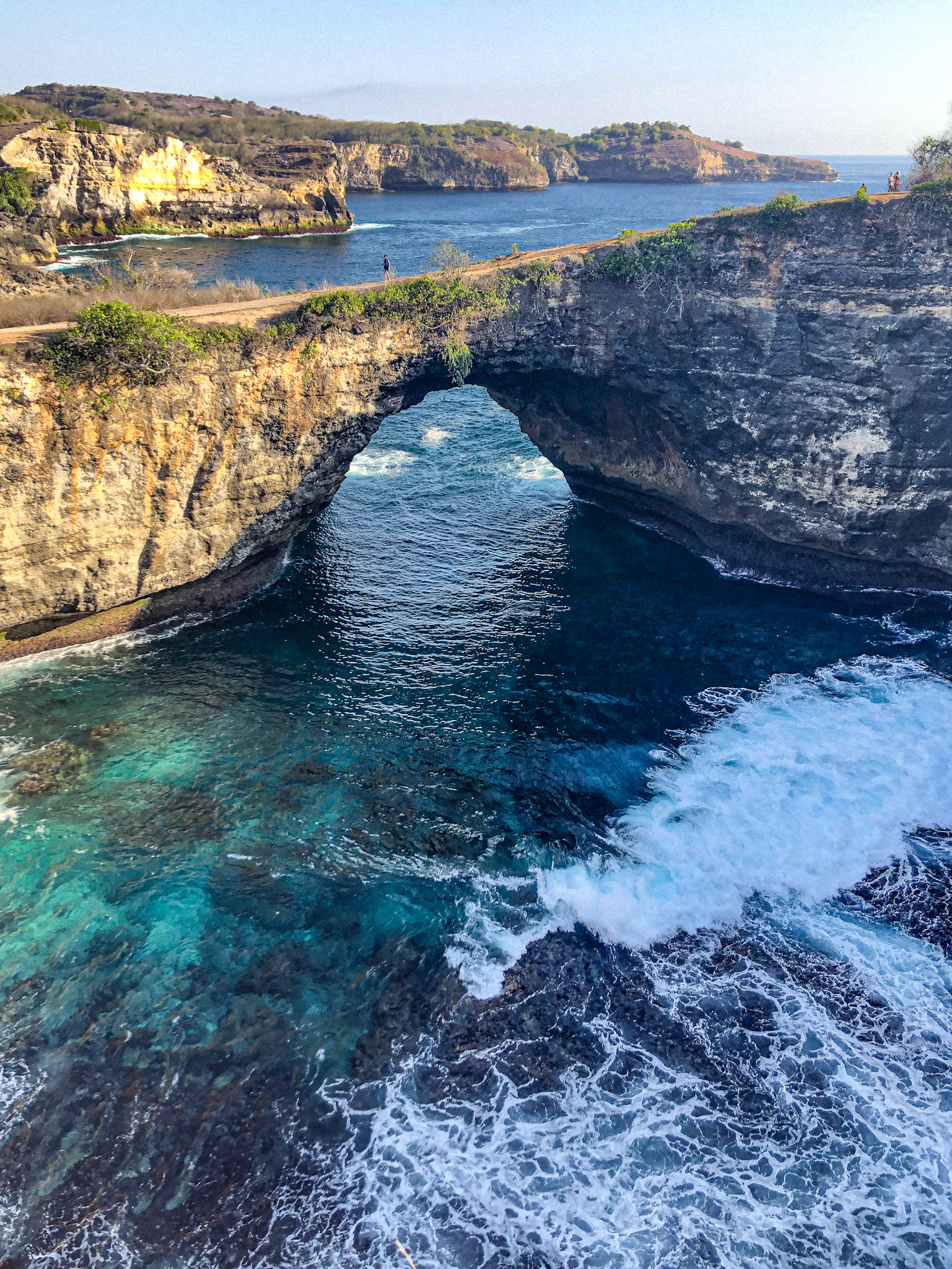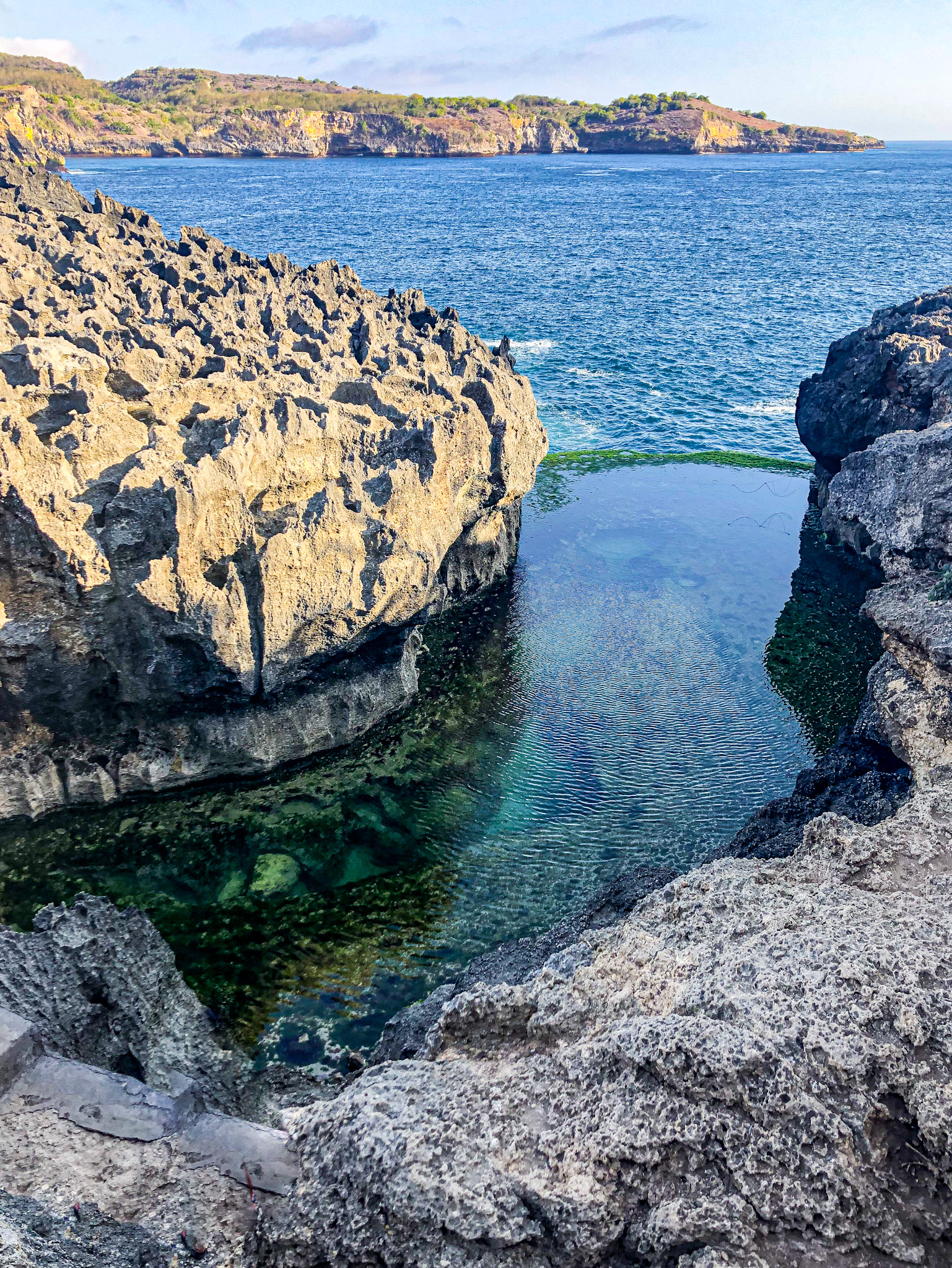 Po Kelingking beach sme zamierili na neďaleké Broken beach a Angel’s Billabong, kde veľa ľudí zostáva aj za západ slnka. My sme sa radšej kvôli pocestným podmienkam vrátili naspäť k prístavu. Šoférovať motorku v tme na takých cestách by bol asi až moc veľký adrenalin 😀