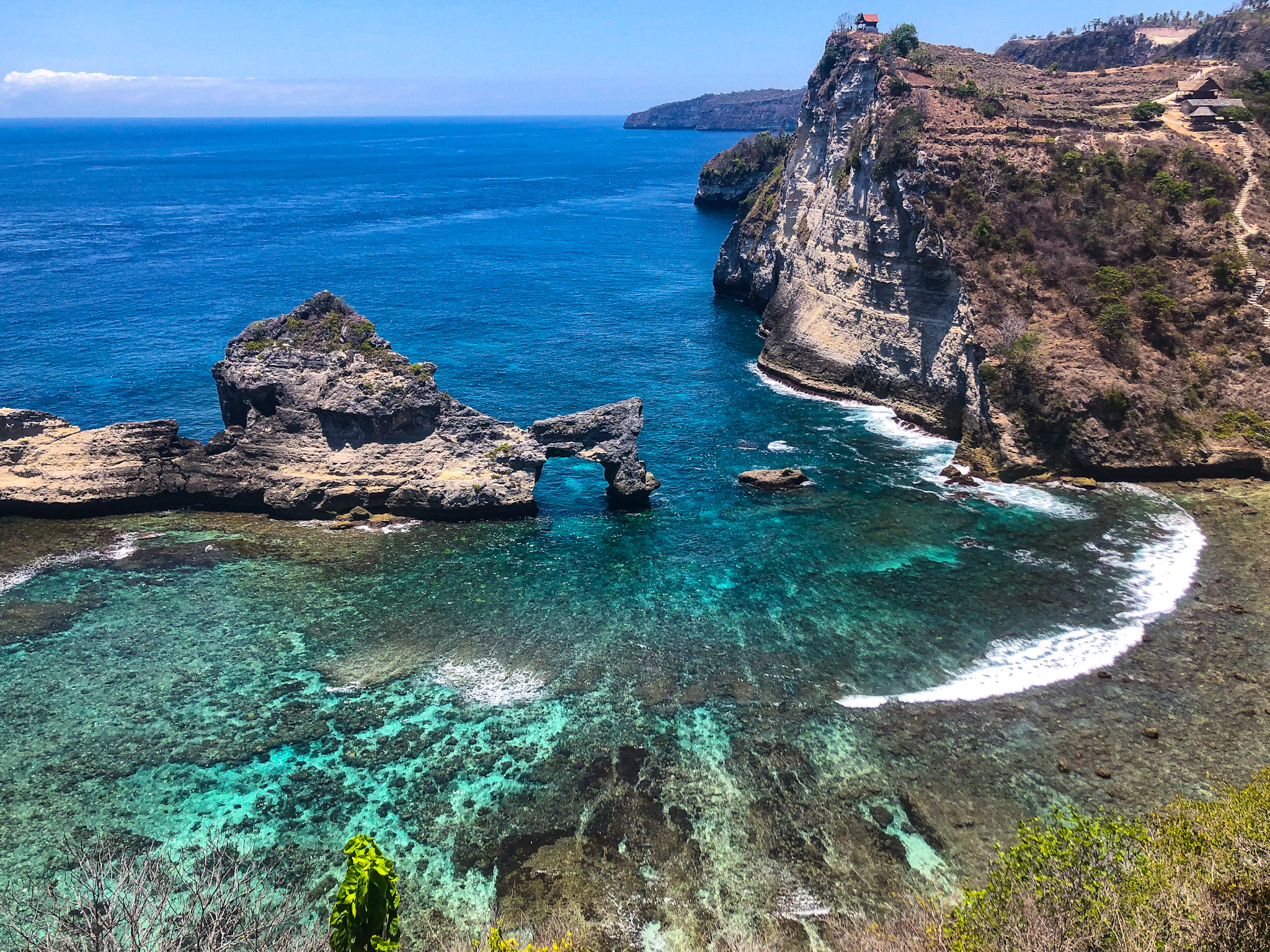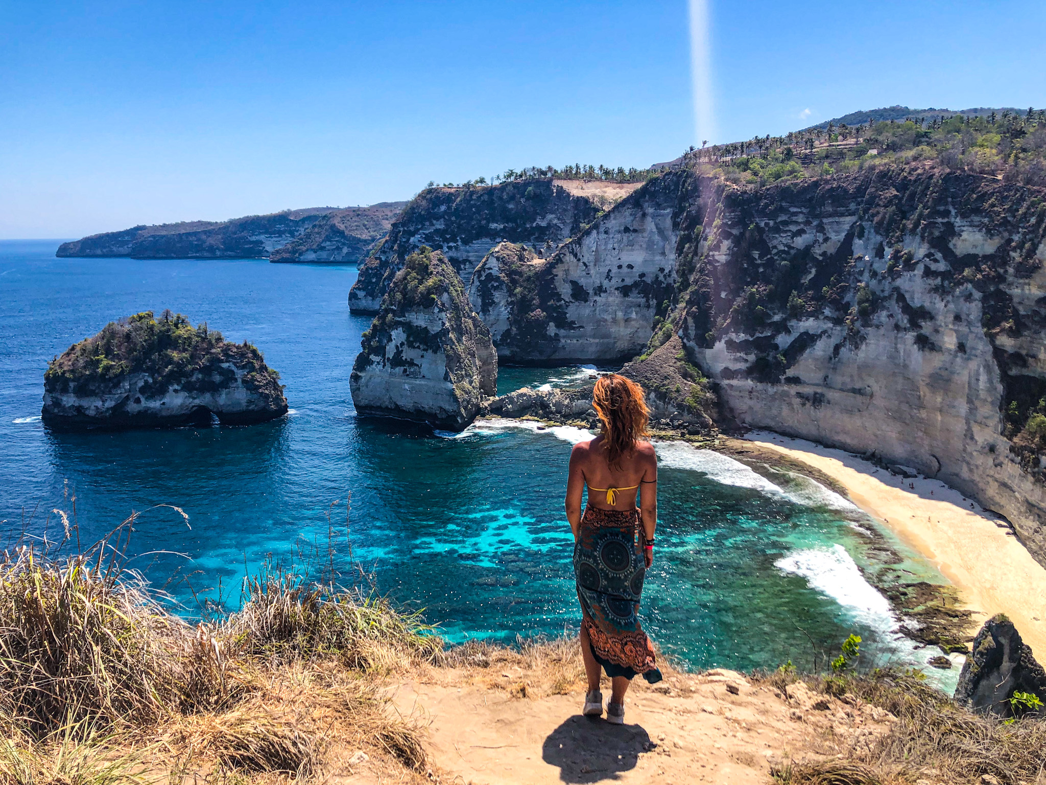 Cesta na východ ostrova je jedna z najlepších a z prístavu sa sem dostaneš približne za hodinu. Pokiaľ sa ale po ceste pár krát zastavíš natrhať mango, môže sa to predĺžiť. Za mňa je východ ostrova najkrajší – minimum turistov, lebo všetci jazdia na známu Kelingking beach, ktorá je na západe. Atuh beach a Diamond beach boli jedny z najkrajších pláží, aké som kedy videla. Motorku zaparkuješ pri jednom z výhľadov na tieto pláže a dole sa dostaneš s menšou pomocou horolezeckých schopností. Ideálne na odpoledne, kedy svieti najviac slnko a je 35 stupňov. Odporúčam so sebou vziať pár litrov vody. Také kardio ani v posilke mať nebudeš. My sme tu strávili celý 1 deň 🙂