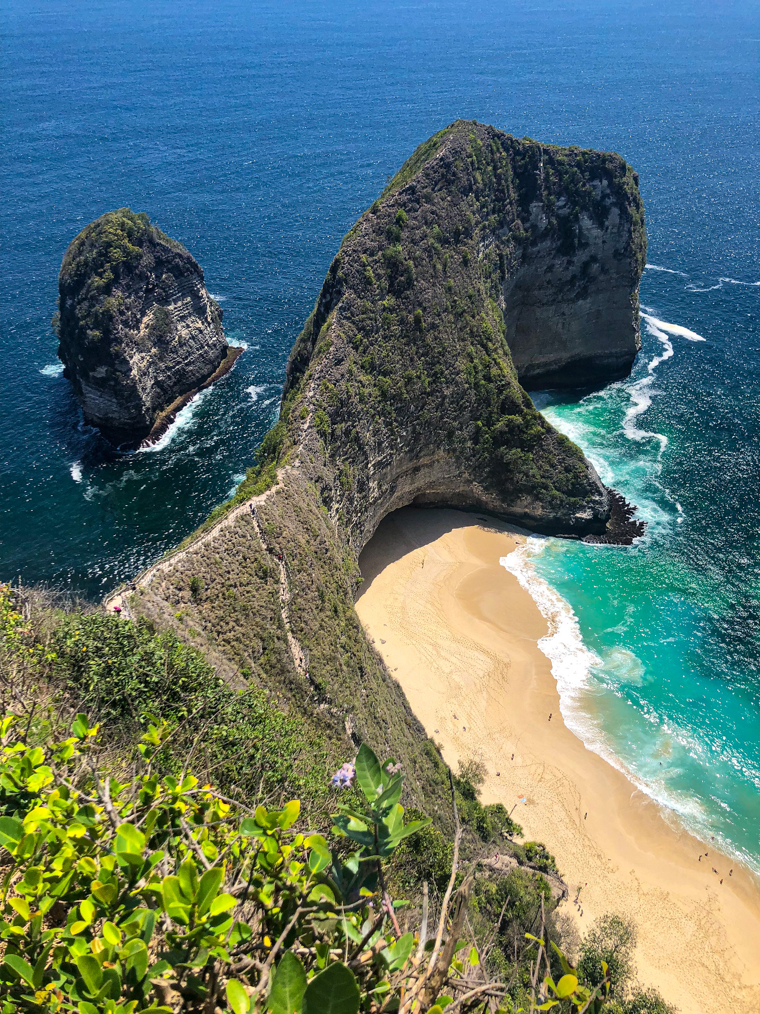 Na druhý deň sme zvolili na ráno šnorchlovanie, kedy sme mali vidieť raje. Bohužiaľ sme ich nevideli ale zato sme plávali so stovkami nádherných rýb. Neskôr sme narazili na miestneho sprievodcu, ktorý garantoval, že s ním raje uvidíme. Síce to môže trvať dlhšie, môžeš čakať aj hodiny kým sa objavia, ale potom je to neskutočný zážitok. Bohužiaľ s ním sme to už nestihli, ale tu máš na neho FB alebo whatsap: +6282187454458. Po šnorchlovaní sme navštívili najznámejšiu turistickú atrakciu ostrova – Kelingking beach. Cesta na túto pláž bola jedna z tých najzložitejších ale rozhodne stála za to. Pri príjazde sme boli celkom šokovaní množstvom turistov, ktorí ale väčšinou na šťastie zostávali na výhľade a už sa im nechcelo zostupovať na pláž. A keď som si myslela, že dostať sa na Atuh beach je zložité, tak toto bolo ešte 10-krát zložitejšie. Chce to lepšiu obuv, nebojácneho ducha, veľa trpezlivosti a znovu litre vody a dobre vyvinuté horolezecké schopnosti. Po náročnom zostupe sa dostaneš na nádhernú pláž, kde si takmer sám.