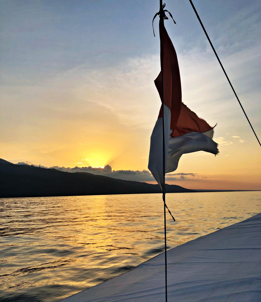 Bola som celkom sklamaná, že nenavštívime Manta Point, lebo som na ne išla už na Nusa Penide a žiadne rajnoky sme nevideli, ale toto sklamanie ma prešlo hneď ako sme sa začali plaviť. Čakal nás dlhý deň na lodi iba s jednou zastávkou a ja som hneď vedela, že to bude skvelá plavba. Deň utiekol veľmi rýchlo a už sme sa pozerali na západ slnka počas neustáleho plavenia sa popri pobrežiach nekonečného množstva malých ostrovov. Vo väčšine krajín lode počas večera zakotvia v prístave a pokračujú až ráno. My sme sa plavili počas celej noci v musím povedať dooosť rozbúrenom mori, kedy sme všetci na hornej palube lietali z jednej strany lode na druhú. Pre mňa trošku scary noc, kedy som celý čas plánovala ako utečiem z potápajúcej sa lodi a ktorým presne okienkom vyskočím.