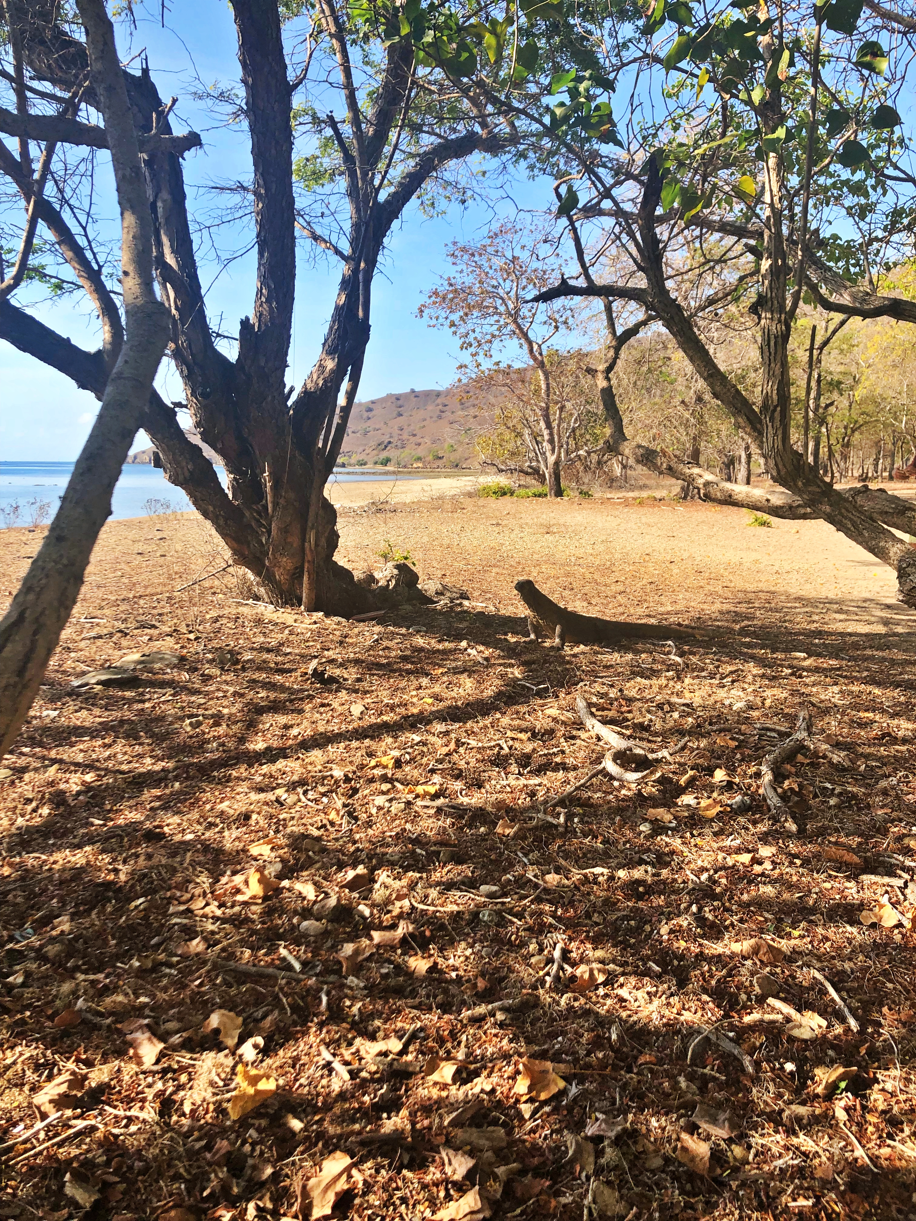Ďaľšia noc už bola kľudná a tak sme sa mohli ničím nerušene vyspať do ďaľšieho dňa. Na Komodo sme dorazili už okolo 6 ráno a znovu sme tu boli prví. Ráno je najlepšie na pozorovanie varana komodského, najväčšieho jaštera na svete, ktorý dorastá až do dĺžky 3 metrov. Stretli sme sa so sprievodcom, ktorý mal so sebou veľkú palicu na obranu, keby na nás náhodou varan zaútočil. Vydávame sa smerom do parku a po pár minútach prechádzky si to už jeden pekne veľký jedinec vykračuje oproti nám. Sprievodca dokonca musel použiť palicu na obranu, lebo to chvíľu vyzeralo, že tento varan pekne dlho nejedol. Stačilo sa ňou pár krát zahnať a varan zmenil smer. V tom sme sa dozvedeli, že sa pár krát do roka stane, že varan vezme batoľa z dediny a dá si ho na raňajky. Tak teda ďakujeme za informáciu a pokračujeme hlbšie do parku. Vidíme varanie hniezda s vajíčkami a malé varančatá, ktoré sa prechádzajú po stromoch. Malé varany žijú na stromoch, aby ich veľké varany nezožrali. Na konci návštevy vidíme ďaľšie väčšie a našťastie najedené varany, ktoré sa nehybne slnia, aby rýchlejšie strávili potravu.
