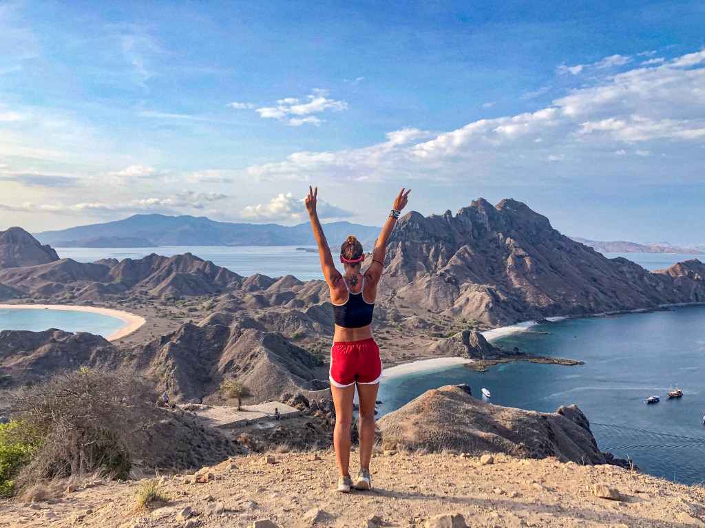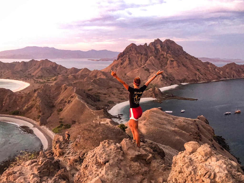 Padar Island a jeho vyhliadka je veľmi známa. Z vrchu malého kopčeka vidíte nádherný rozvetvený ostrov, ktorého súčasťou sú aj vyššie spomínané ružové pláže. Táto vyhliadka sa veľmi líši v akom období ju navštívite. Ja som bola v novembri, v suchej sezóne, kedy ostrovy mali od slnka vypálenú väčšinu vegetácie. Niekedy sa sem musím vydať po dažďovej sezóne, kedy sú všetky ostrovy nádherne zelené. Ale i tá všade prítomná hnedá mala svoje čaro. Na tejto vyhliadke sme ostali až na západ slnka a na noc sme ako prvý krát ostali zakotvený v zátoke pri ostrove.