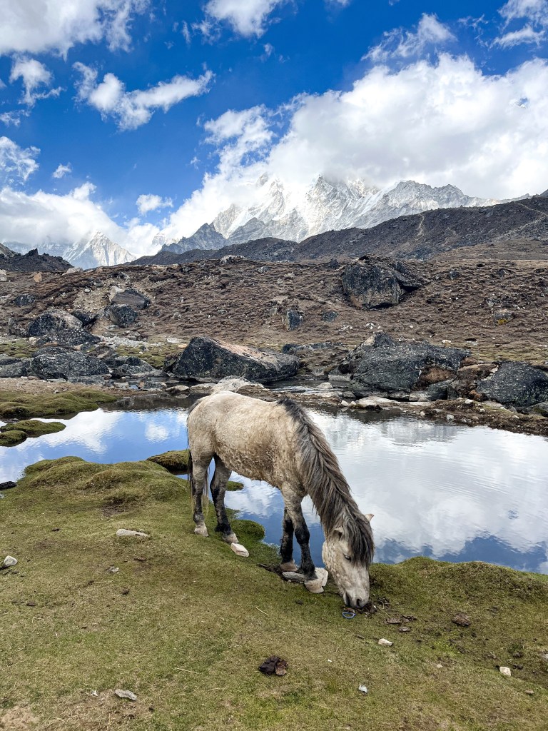 Je krásne slnečné ráno a ja si na raňajky dávam tibetský chlieb s arašidovým maslom a kávu, aby ma to nabudilo na náš trek do High campu. Balím posledné veci, jeden batoh dávam nosičovi a jeden si vyložím na chrbát. Každý nesieme 15 kg, začínam sa cítiť ako nepálski nosiči. Začíname kráčať k hore po chodníku, ktorým nikto s nami nejde a ja som rada, že konečne máme kúsok Himalájí iba pre seba. Stúpame stále vyššie a vyššie, preliezame pár skál, šplháme sa po lane a po pár hodinách sa dostávame na miesto, kde sa dozviem, že to pod nami, čo si myslím že je Base camp, je vlastne High camp, do ktorého ideme 😀 Takže teraz zlezieme dole po chodníčku, ktorým za pár hodín vyrazíme hore, no dobre.