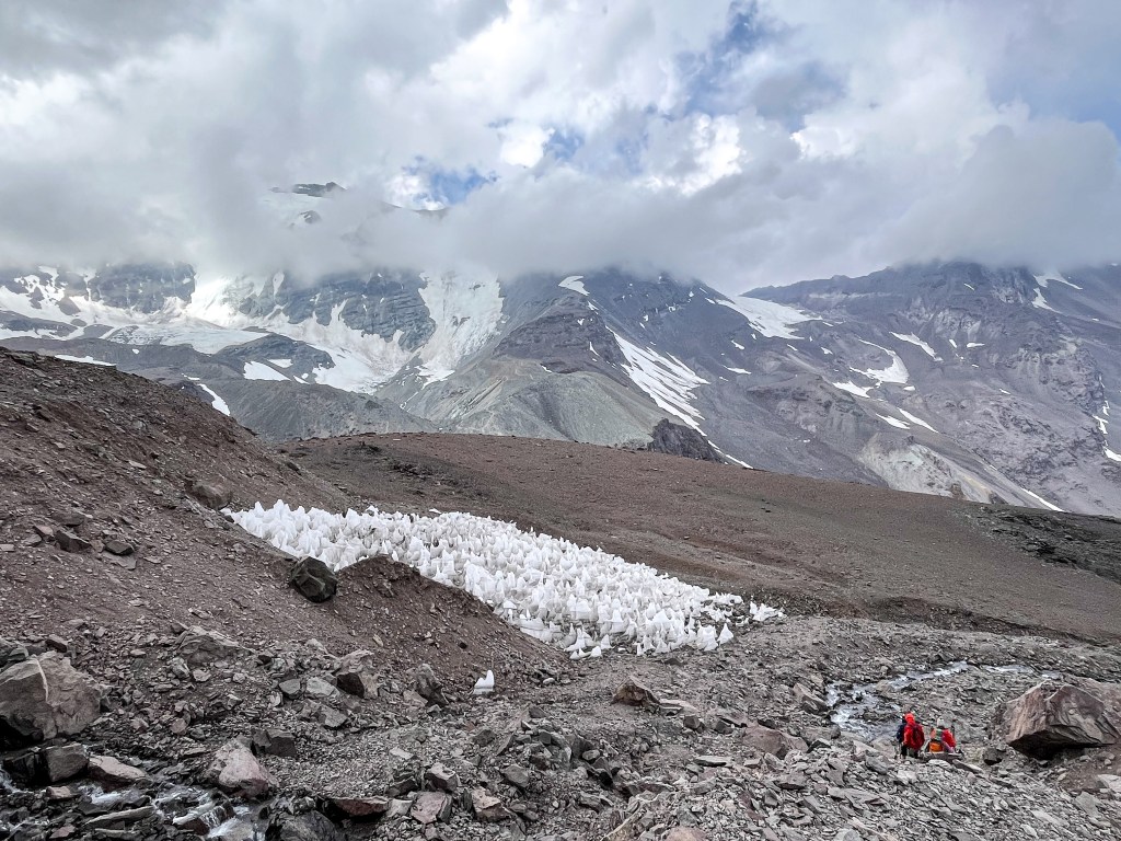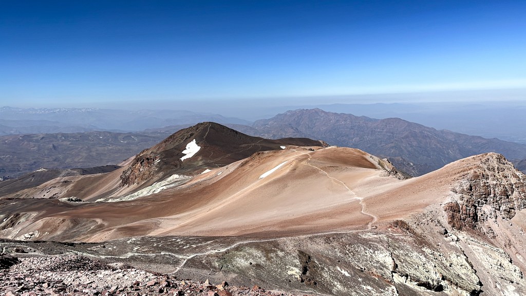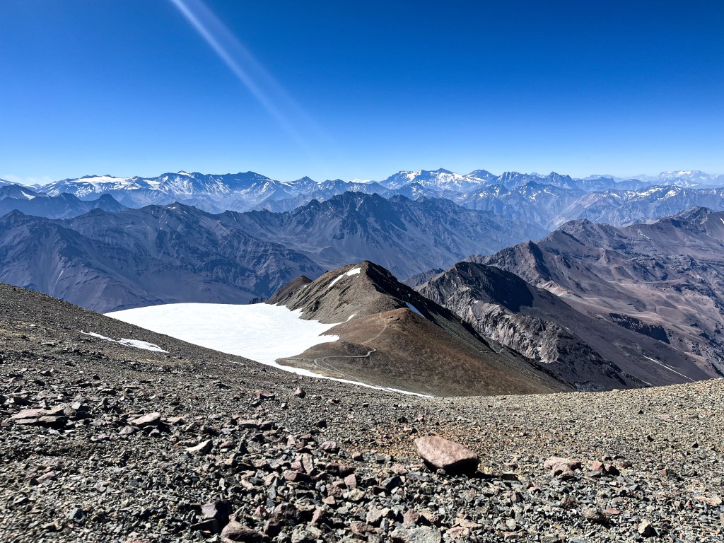 Po prebdenej noci strávenej s bolesťami hlavy a celého tela sme mali budíka na 4:00. Nasledoval výstup na Cerro el Plomo. Na mňa až moc rýchla aklimatizácia, dovtedy som bola zvyknutá spať v 4200 m až po cca. 5 dňoch, my sme si to dali hneď druhý deň. No nič, nie je čas na fňukanie, ide sa hore! Cieľ nebol vrchol, ale aklimatizácia. Každý tam kam dôjde a na čo bude mať sily. Ale keďže sme boli silná skupina, po cca. 6 hodinách sme boli všetci hore. A tie výhľady? Zasnežené Andy spoločne s najvyšších vrchom južnej Ameriky Aconcaqua pred nami.