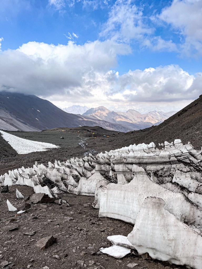 Ďaľší deň vstávačka o 7h ráno, kým sa človek naraňajkuje a zloží stan a spacák, je hneď 9h. Vyrážame do BC pod Cerro el Plomo. Cesta vedie popri riečke, vidíme už aj prvé ostrovčeky snehu. Bol to nádherný slnečný a teplý deň. Tesne po 14:00 sme boli v BC (4200 m), najedli sme sa, zložili si veci a šlapali ešte vyššie, pod Cerro Leonera. Po pár hodinách sme boli naspäť a nasledovala klasika v podobe prevarenia vody, stavania stanu a večere.