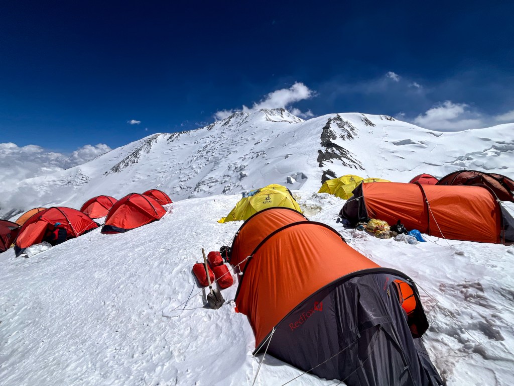 Zastavujeme asi 150 metrov od C2 (5300 m), sadáme si na sneh, sme totálne vyčerpaní. Milan hovorí, že mu je na zvracanie. Po pár minútach pozbierame sily, dáme si posledné vertikály a v kempe dostávame stan. Milan ľahá vyčerpaný. Naopak moja energia prišla naspäť hneď ako sme dorazili na miesto. Dávam mu moje posledné decilitre vody. Beriem cepín a idem po ľad. Roztápam ho, musím prevariť vodu, trvá to strašne dlho. Po roztopení je fajn do vody hodiť ešte dezinfekčnú tabletku. Prípady otrávených ľudí z kempov je veľa a my nechceme byť jedny z nich. Milan na tom nie je dobre. Napije sa zbytku čaje, nahádže do seba vitamíny a po pár minútach mu príde zle a všetko pred stanom vyvráti. Bežím za šerpom a hovorím mu, čo sa deje. Má si oddýchnuť a po 2 hodinách uvidíme, ako mu bude. Ak sa to nezlepší, musí zostúpiť s šerpami dolu. Topím ďalší a ďalší sneh, Milanovi je lepšie, niečo málo aj zjedol. Uznávame, že keď si oddýchne, mal by byť v poriadku.