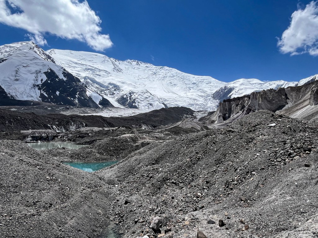 Z BC sa presúvame do Camp 1 (C1). Je to krásna, ale dlhá a vyčerpávajúca 12 km prechádzka najprv cez rozkvitnuté lúky a cibuľové polia, potom sa premení na škriabanie sa do vrchov po suti, pár traverzov, kde sa človek na 30 cm úzkom chodníku musí vyhýbať koňom s nákladom, a nakoniec prichádza ľadovec a preskakovanie riek vytvorených z roztopených ľadovcov. Po 6 hodinách sa dostávame do cieľa. C1 sa nachádza na ľadovci pod horou v nadmorskej výške 4400 m a perfektne z nášho stanu vidíme celý Lenin Peak. Z diaľky sledujeme trasu po ľadovci do vyšších kempov a vidíme lavínové oblasti a neskutočne veľa trhlín. Len pred pár týždňami tu usmrtila lavína jedného horolezca. Jedna časť zvaná „Frying pan“, ktorá je považovaná za jeden z najnebezpečnejších úsekov Lenin peaku, je v diaľke priamo pred nami. Horu pozorujeme celé hodiny. Máme obrovský rešpekt.