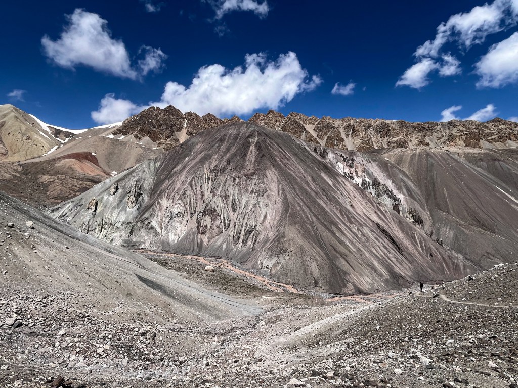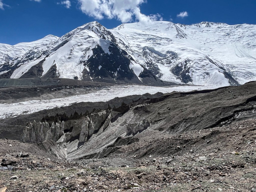 Pár ľudí z našej skupinky sa predposledný deň v BC už nudili, a tak vyrazili do C1 o deň skôr. My sme sa zbalili a po raňajkách vyrazili podľa plánu (aj keď o pár hodín neskôr, lebo sme si chceli užiť ešte pohodlie, ktoré BC ponúka). Nikam som sa neponáhľala a snažila si užiť ten posledný deň mimo ľadovec. Oproti aklimatizácii bolo veľmi pekné počasie, a tak som si mohla vychutnať všetky krásne výhľady, ktoré Pamír počas našej aklimatizácie skrýval. Cesta do C1 mi trvala asi 6 hodín.