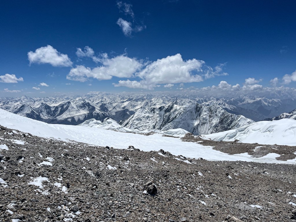 Pomaly postupujem ďalej a dobieham Milana, ktorý je už tiež na pokraji svojich síl. Sme už tesne pod vrcholom ale vieme, že nám to bude trvať ešte hodinu. Tempo, ktoré nasadíme, je pomalšie ako to slimačie. Tesne pod vrcholom sa stretávame s ostatnými, ktorí tiež už nemôžu a spoločne jeden za druhým dorazíme na vrchol. To nekončiace šťastie a vďačnosť, ktoré hore nastalo, som na žiadnych iných vrcholoch nemala. Moje prvá sedemtisícovka. Stojím tu a teraz a nedokážem zastaviť svoj plač od šťastia. Ďakujem svojmu telu, že to dokáže zvládať. Ďakujem svojej mysli, ktorá dokáže ostať sústredená aj v tých najťažších podmienkach. Ďalší splnený sen, 7134 metrov vysoký.